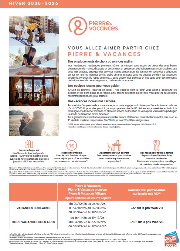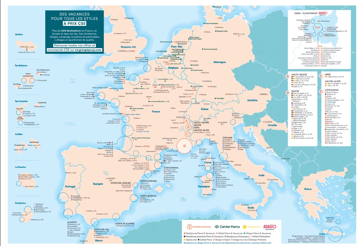 - Pierre & Vacances + Maeva + Adagio + Center parcs + Villages Nature :